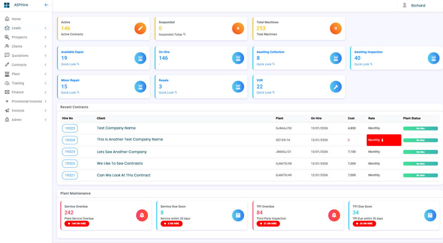 Create, view and update hire contracts and quotes.